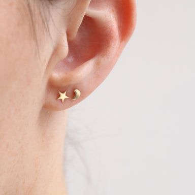These Mini Moon Studs are the earrings you didn’t know you needed. A perfect crescent moon handcrafted out of mini star-like cubic zirconia, and se...