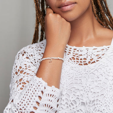 Refined and effortlessly timeless. This handcrafted bracelet is beaded by hand with genuine freshwater pearls, creating a delicate layering piece t...