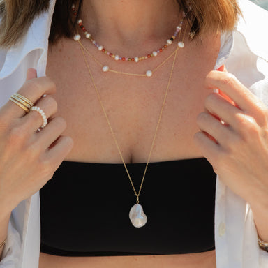 Ready for your neckline to glow up? This bold baroque pearl pendant is your go-to for effortless elegance. Handcrafted in Leah Alexandra's Vancouve...