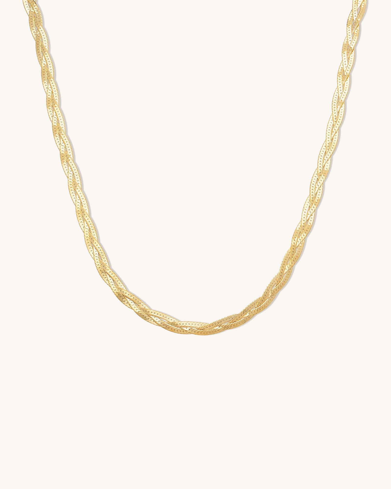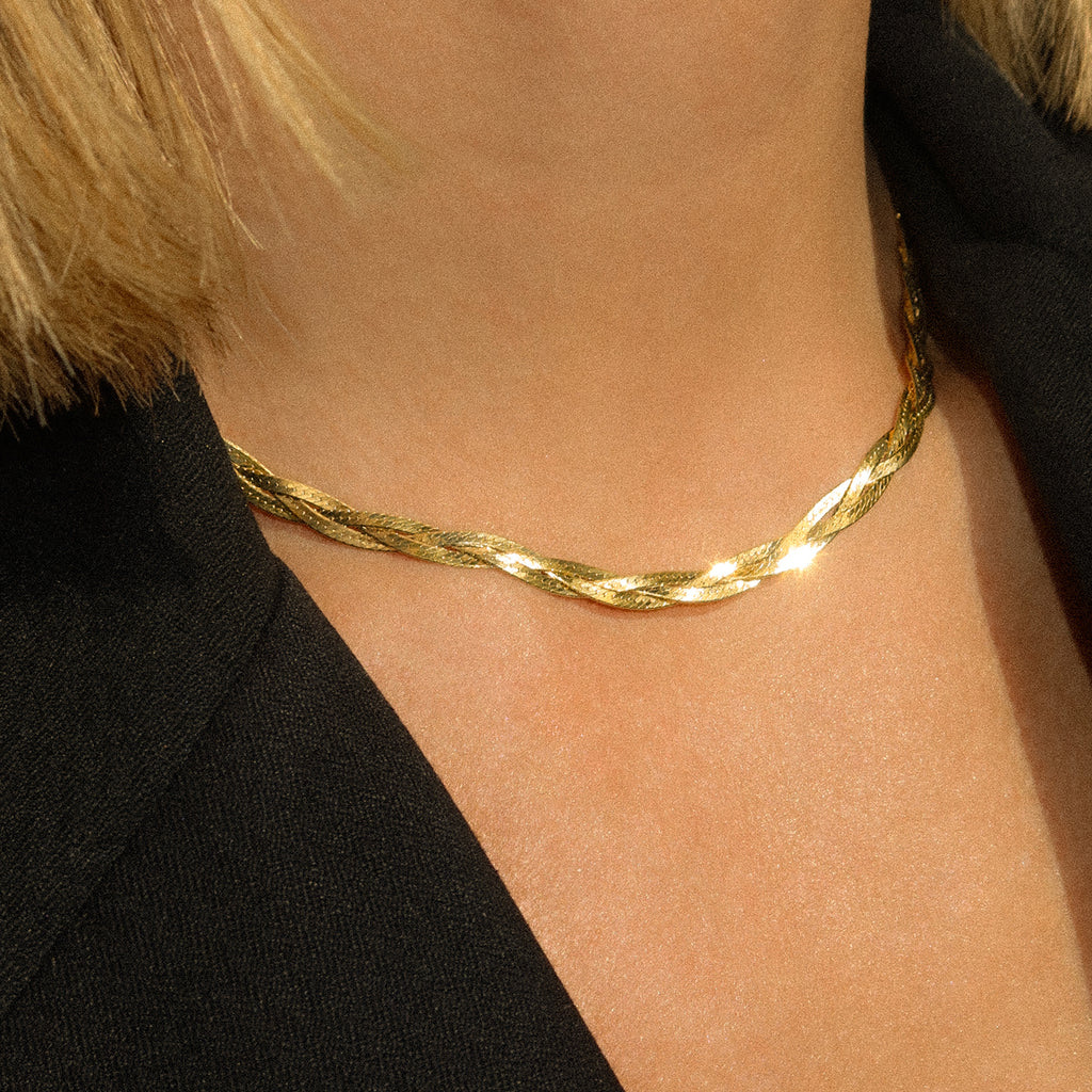 The Braided Herringbone Necklace is a true statement in refined elegance. With its intricate weave and fluid drape, it brings a touch of vintage-inspired luxury to any look — timeless, bold, and endlessly wearable.