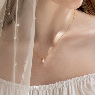 This luxe Singola Pearl Necklace is crafted with grace and sophistication, featuring a single, pearl drop solitaire suspended from a dainty, delica...