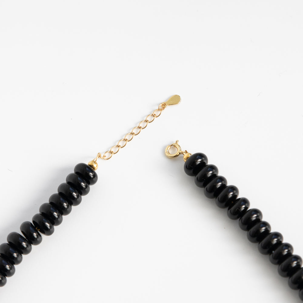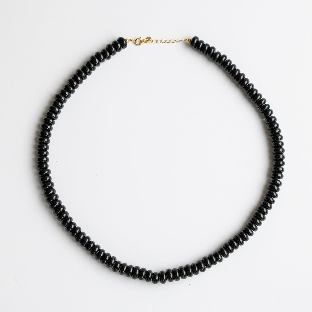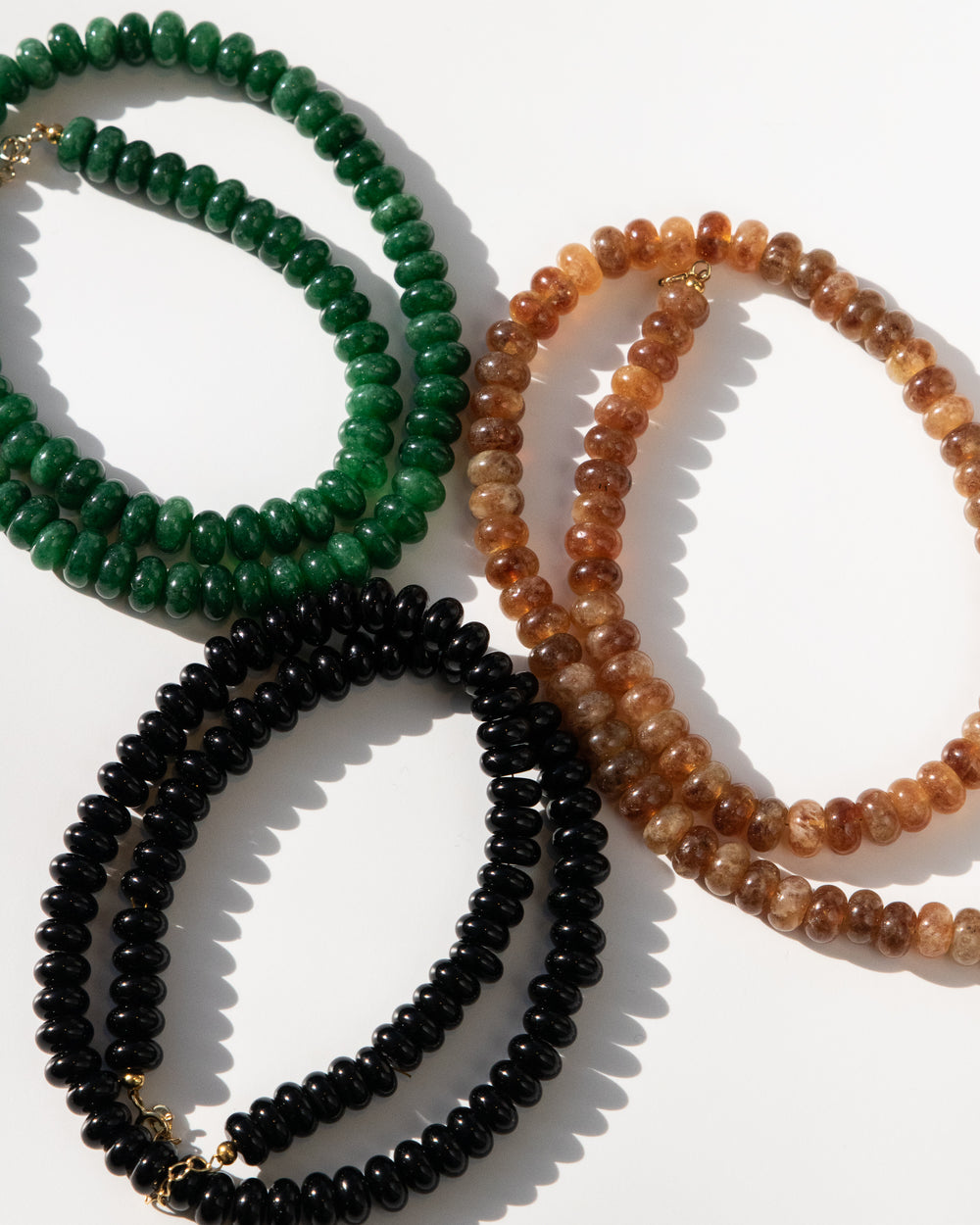 Meet the Giada Necklace! Strung with smooth jade beads, it drapes effortlessly, resting along on your collarbones. Each gemstone carries its own unique variations in colour, making every piece truly one of a kind. Designed with an adjustable length, this versatile necklace is perfect for layering or wearing solo to add a bold pop of colour to any look.