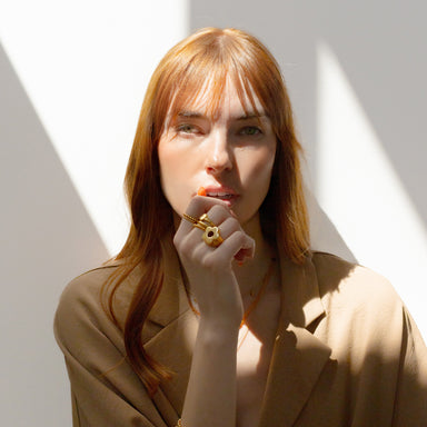 Who doesn't love a plain gold band? A classic and timeless ring, Leona can be paired with other statement pieces or shine on its own. This one is s...