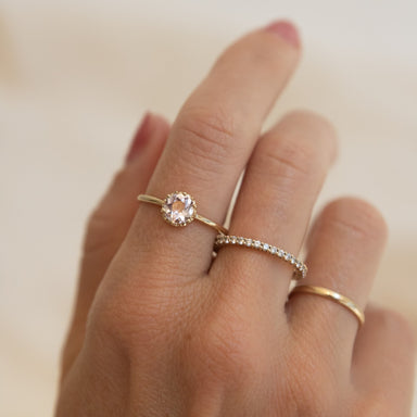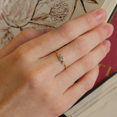 "Stack in style with the Circa Ring, featuring three dazzling white topaz gemstones. Perfect for adding a touch of sparkle and versatility to any o...