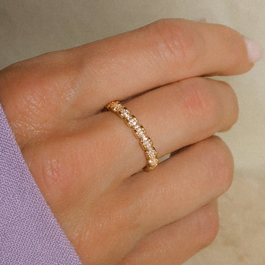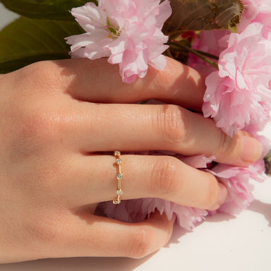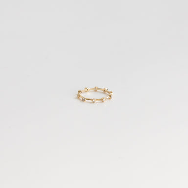 Handcrafted in 18-Karat gold, this delicate skinny ring comes with eleven small faceted diamond cut gold beads that shimmer like diamonds. Poppy Fi...
