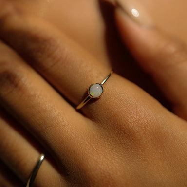 Opal's prismatic quality takes center stage in your ring stack, casting a mesmerizing glow. Long revered as a magical stone, this cabochon opal rin...