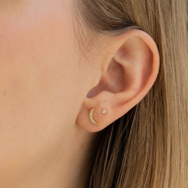 These Mini Moon Studs are the earrings you didn’t know you needed. A perfect crescent moon handcrafted out of mini star-like cubic zirconia, and se...