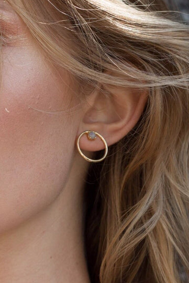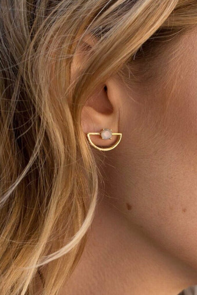 A half-moon stud that features a tiny gemstone - sweet yet substantial. Hailey Gerrits jewelry is handmade in Vancouver, Canada. - 14K gold vermeil...