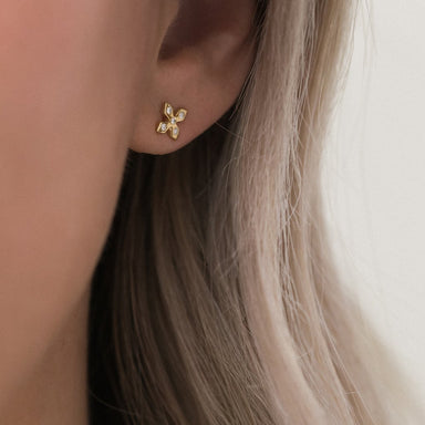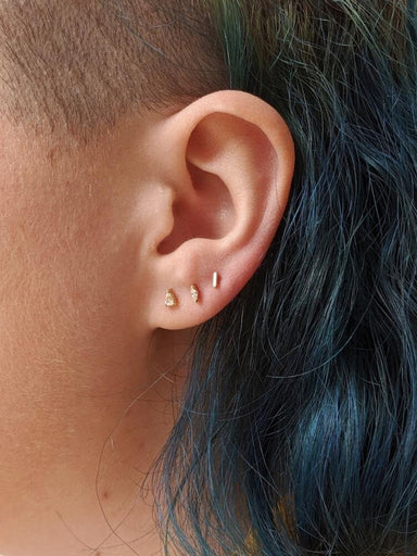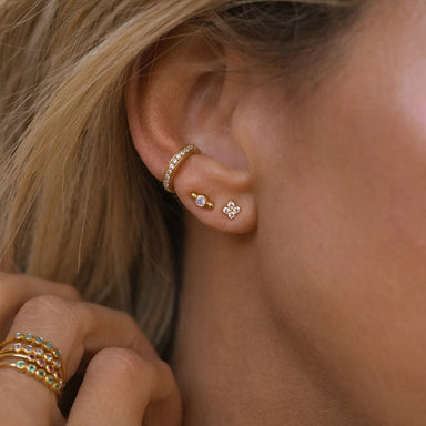 This cutie quad of tiny CZs form into your new go-to studs. Will always RSVP "yes" to an ear party! Details:• Stud measures 3mm Materials:• 14k Go...