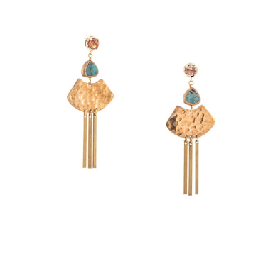 These elegant earrings combine vintage and modern design. Hand-hammered vintage brass U-shaped pendants pair with sleek gold-plated archway studs, ...