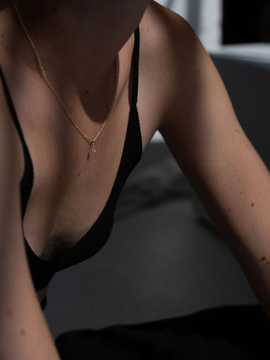 Featuring a delicate cable chain and pear shaped White Topaz drop, Lisbeth's Basel necklace is a minimal, fine piece that is perfect for every day....