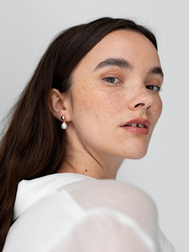 The Degas earrings feature a hoop with a large Baroque Pearl charm. The pearl is removable, adding even further versatility to these already perfec...