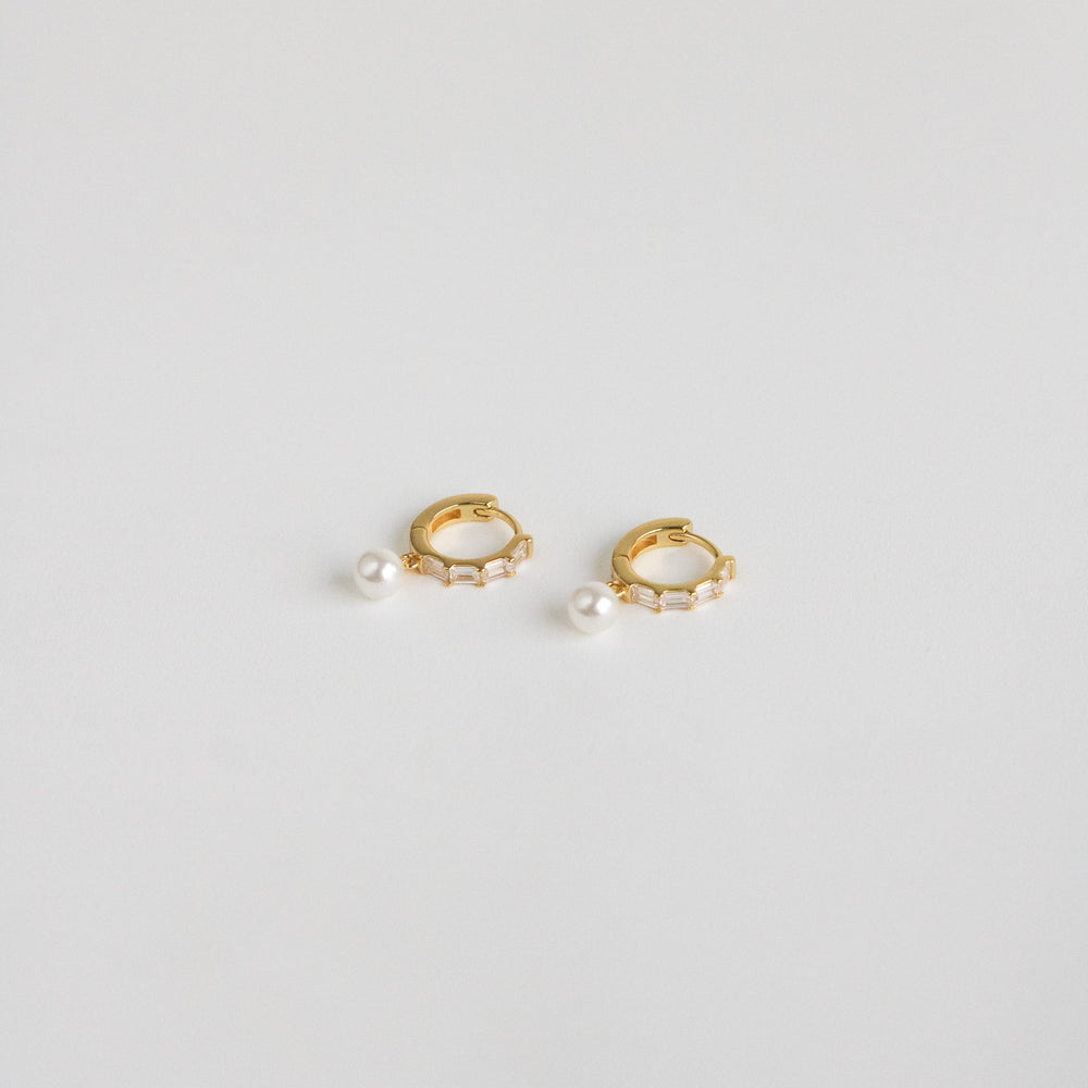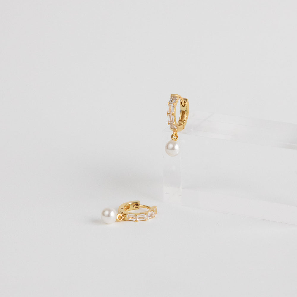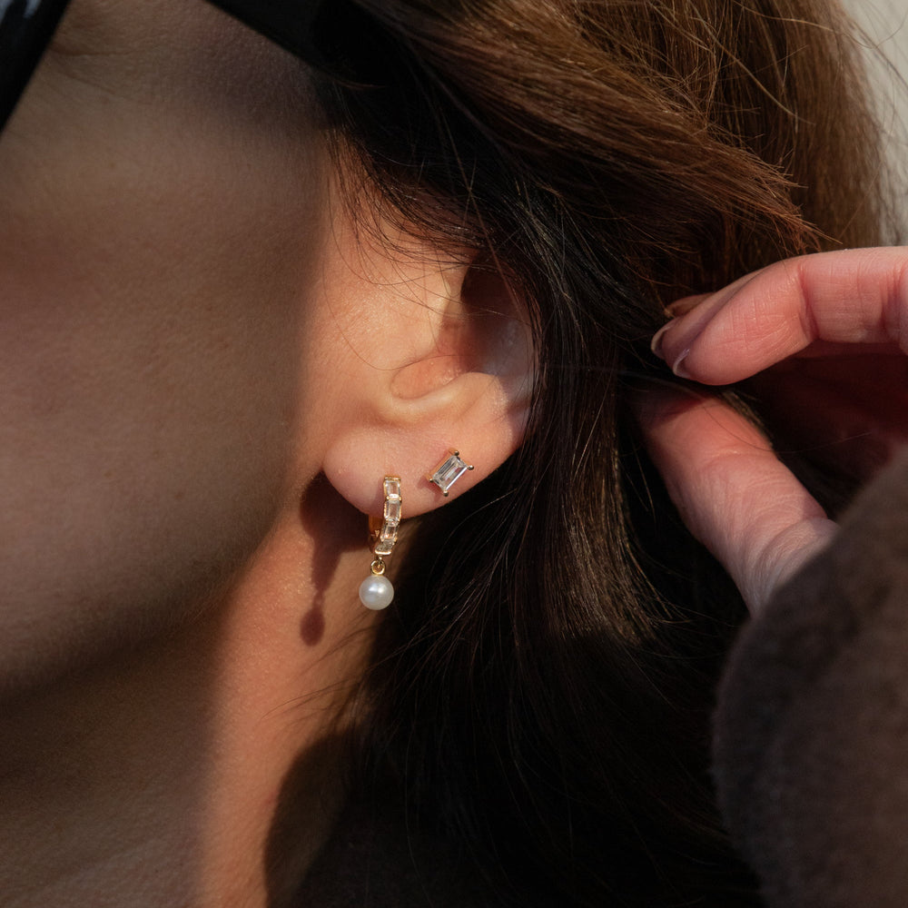 The Amara Pearl Huggies feature a hinge-style hoop with four glimmering baguette-cut cubic zirconias and a perfect pearl drop. These huggies are as practical as they are beautiful. Add an effortless a hint of elegance to your daily look with just the right amount of sparkle and sophistication.