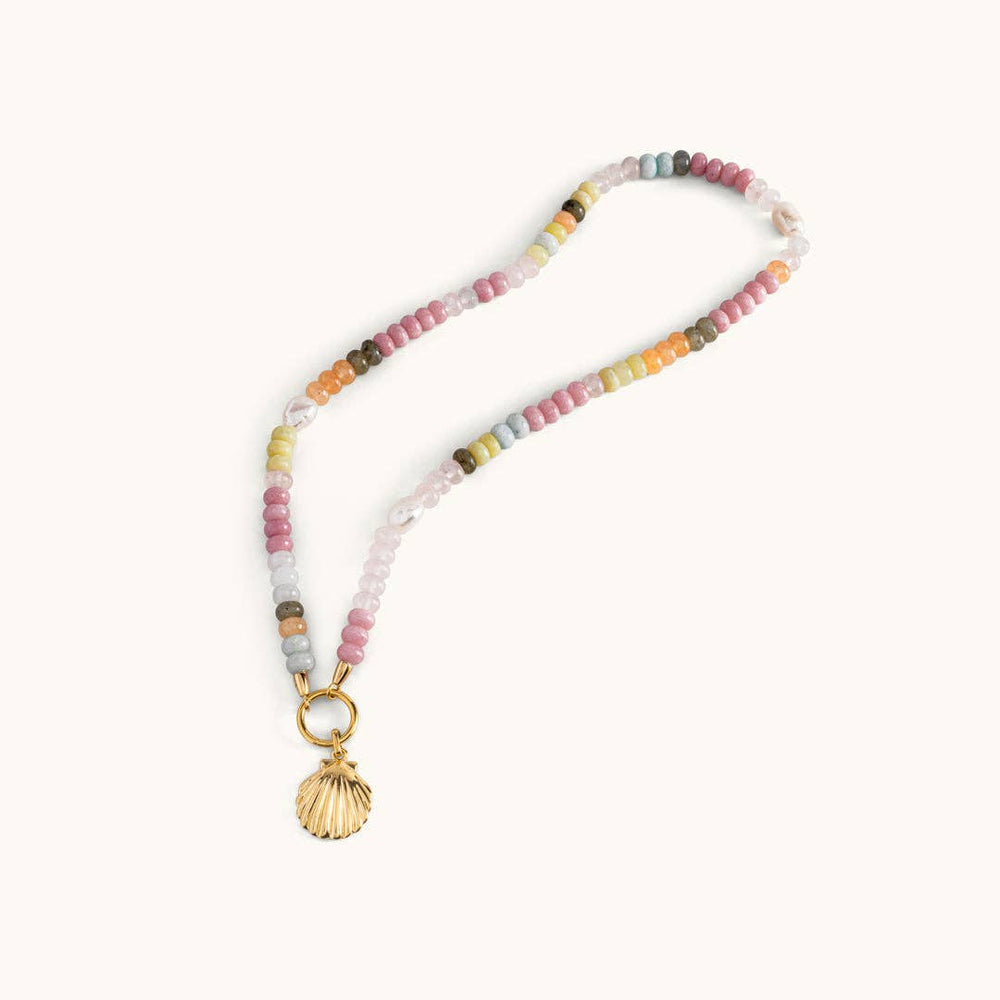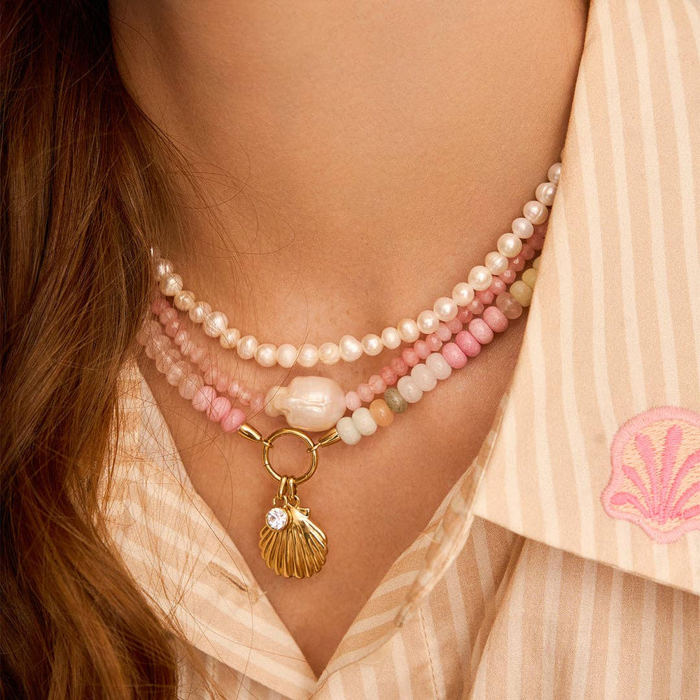 Add some warmth to your outfit with our Blossom Necklace. Featuring pink hues and real freshwater pearls, this customizable beaded necklace is perfect for any occasion.