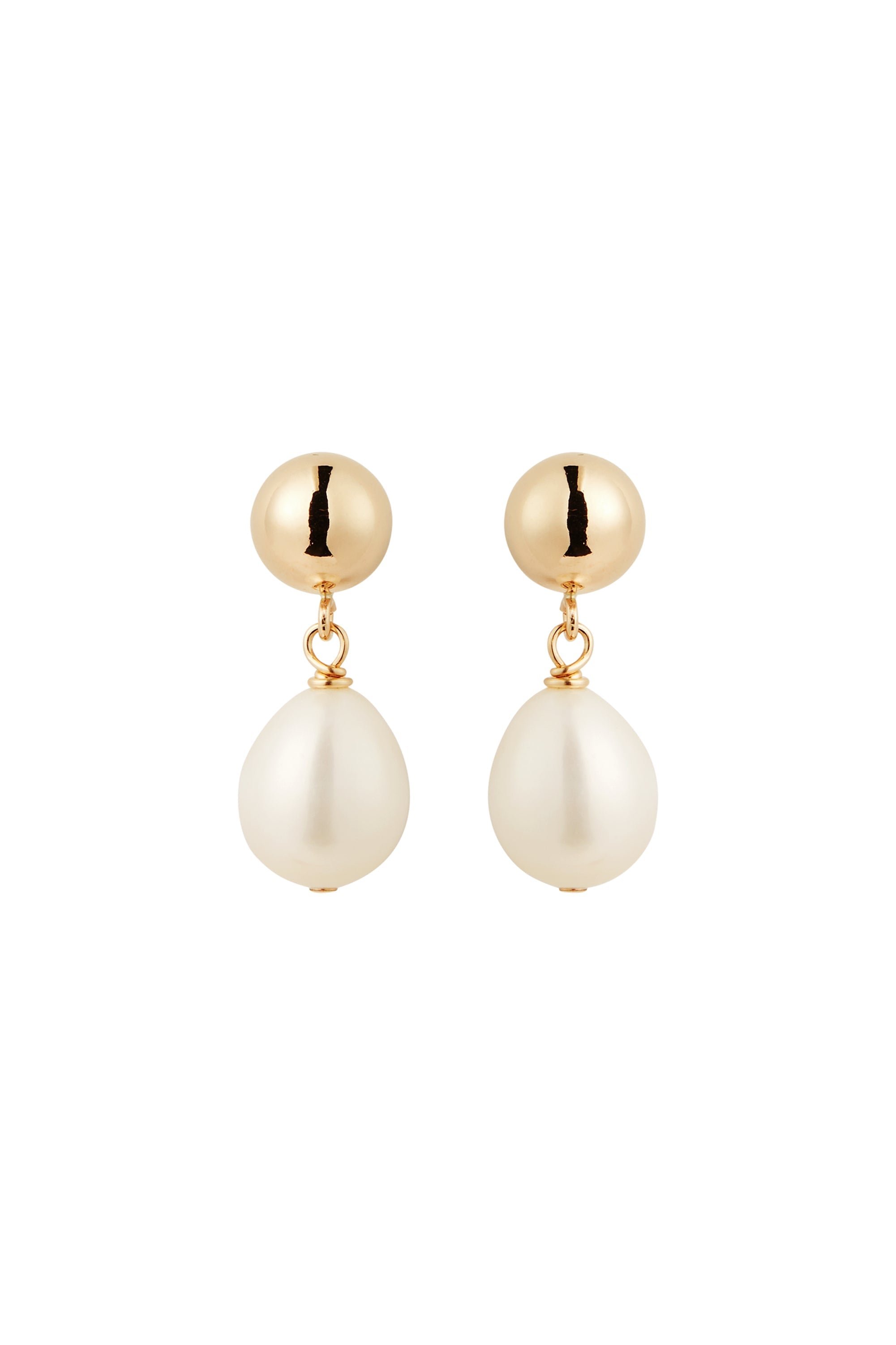 A classic drop earring featuring a sphere stud accented by beautiful, one of a kind, oval Fresh Water Pearls.