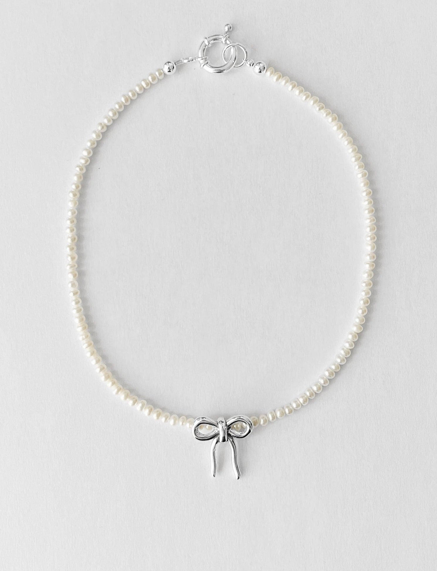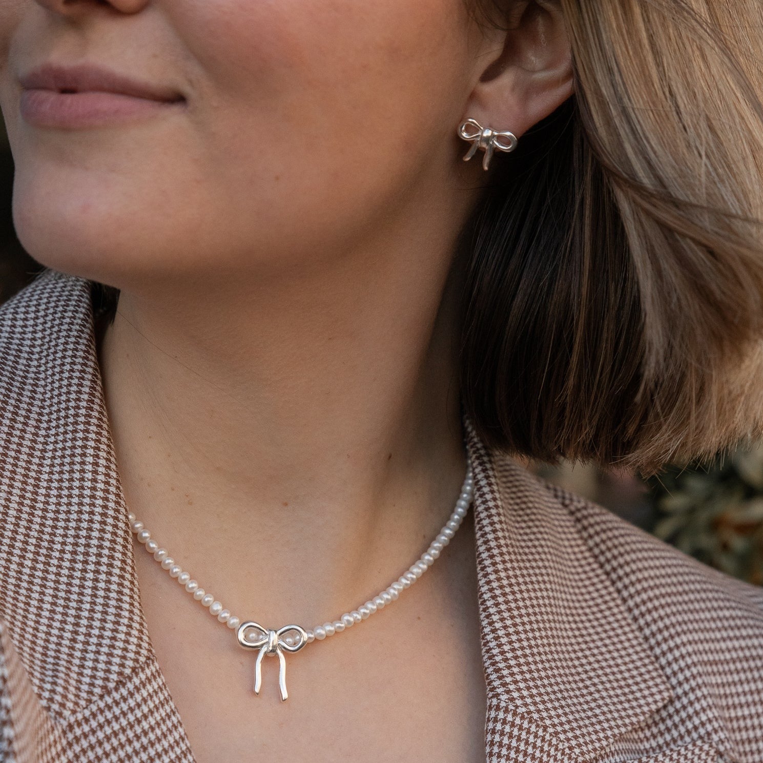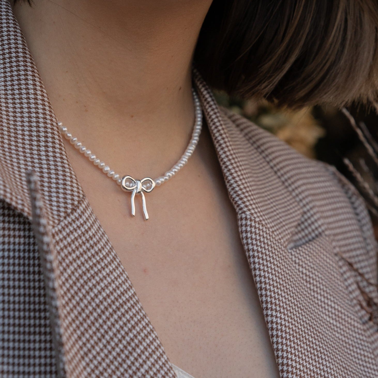 Bring a bit of beauty and grace to your neckline with our Maisie Pearl Necklace! Crafted with a silver bow on a pearl strand, it'll elevate any outfit.