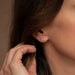 The model pictured is wearing the Stella Bar Studs with the Dolce Studs and the Mae Studs.