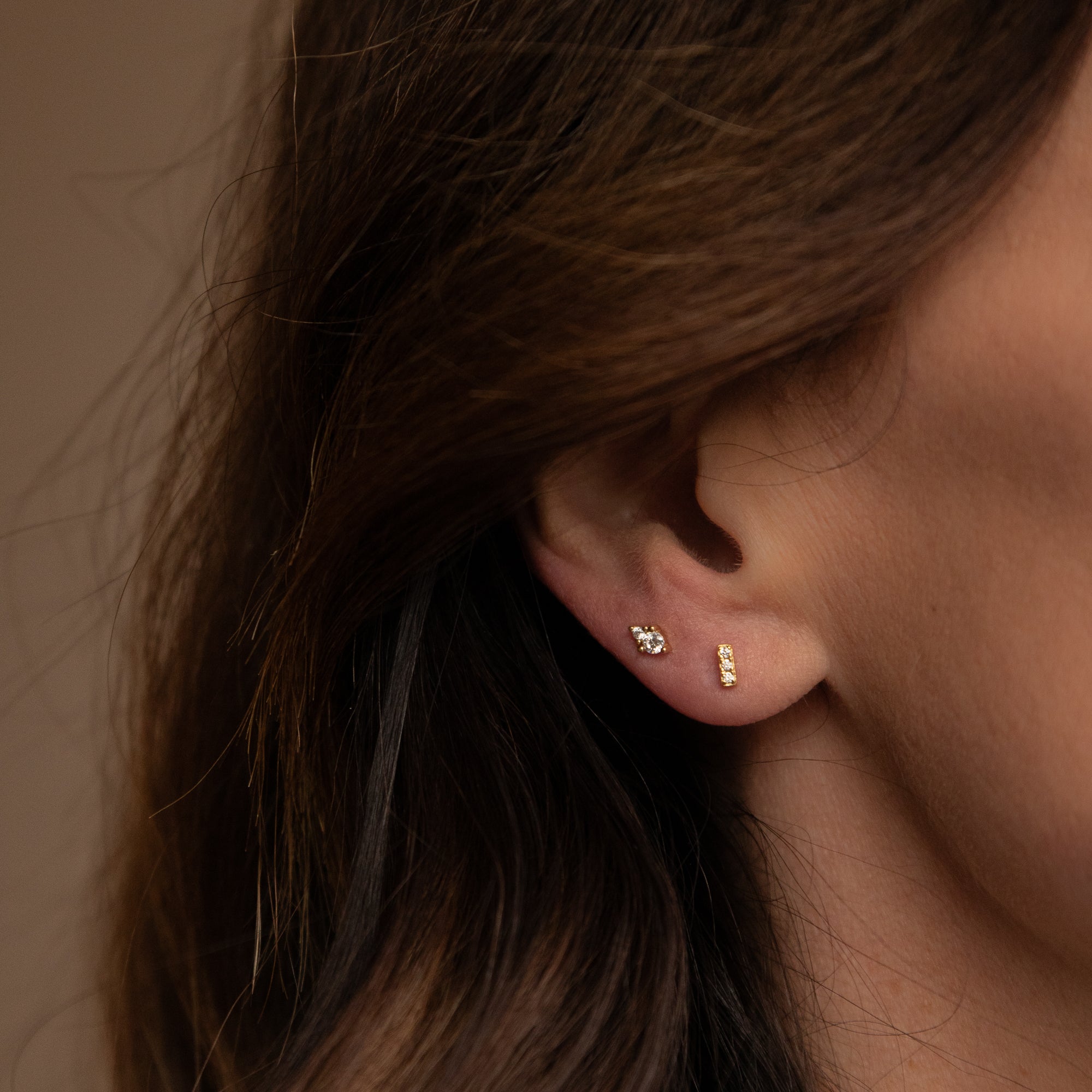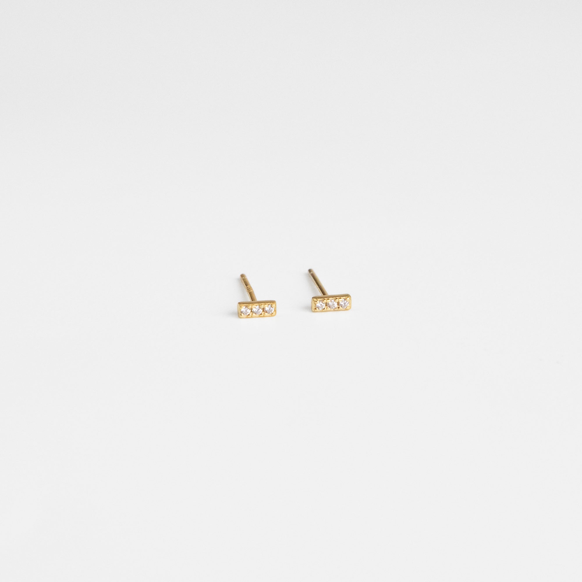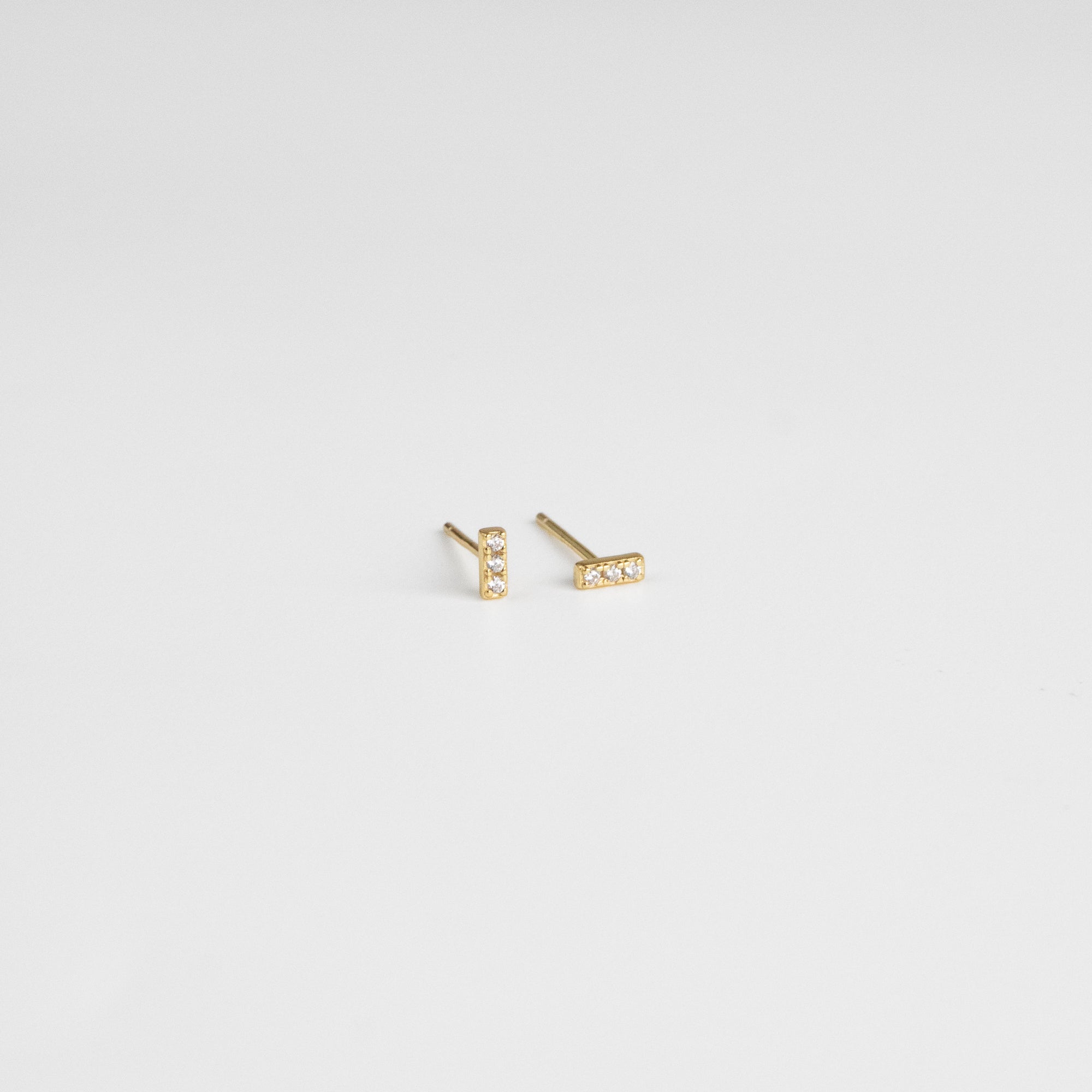 Featuring three shimmering cubic zirconia stones set in a dainty, minimal bar design, these studs effortlessly add a hint of sparkle to your look.