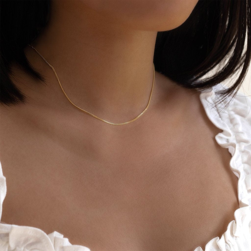 An essential when it comes to layering. This minimalist curb chain puts the finishing touch on any layering look.