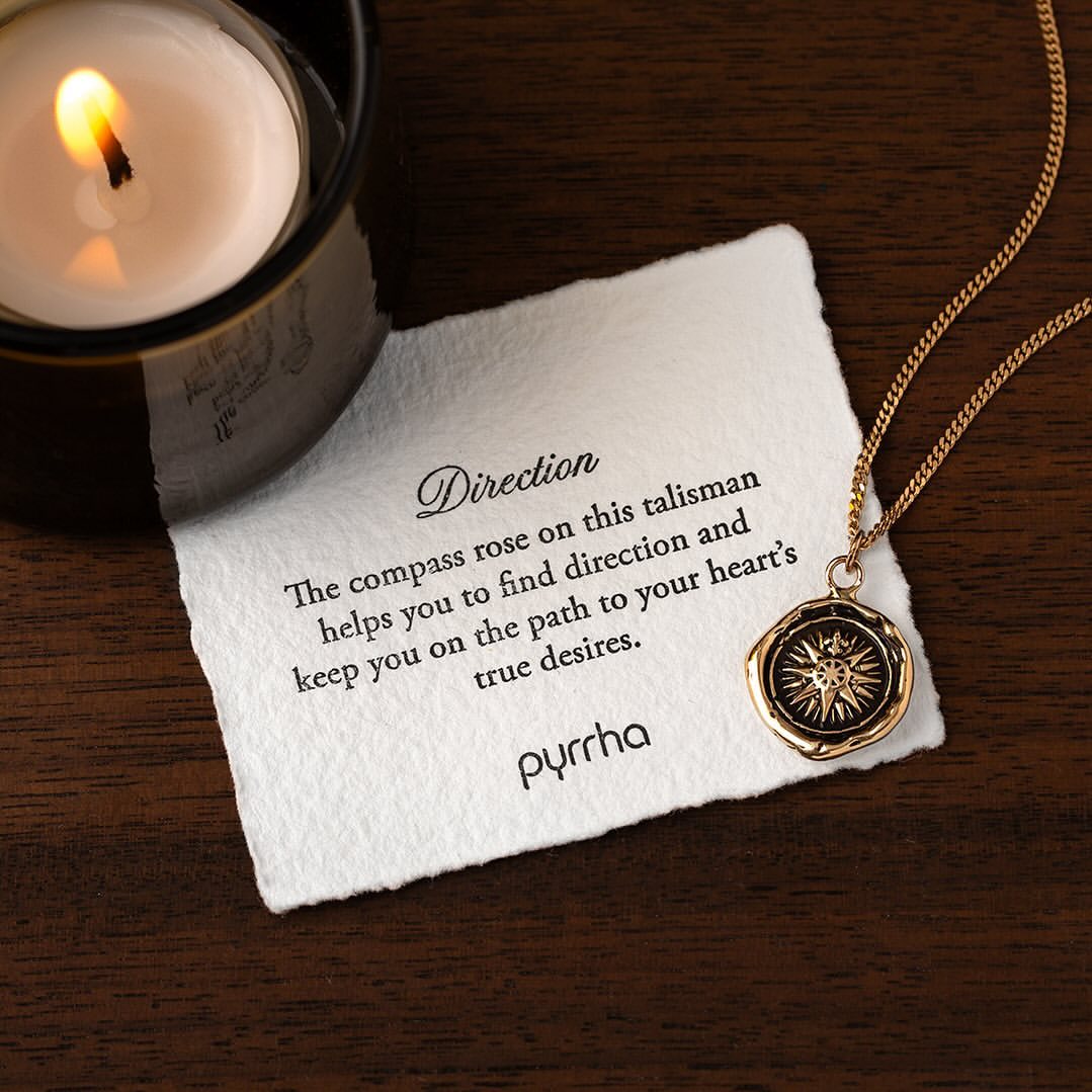 The compass rose on this talisman helps you to find direction and keep you on the path to your heart's true desires.