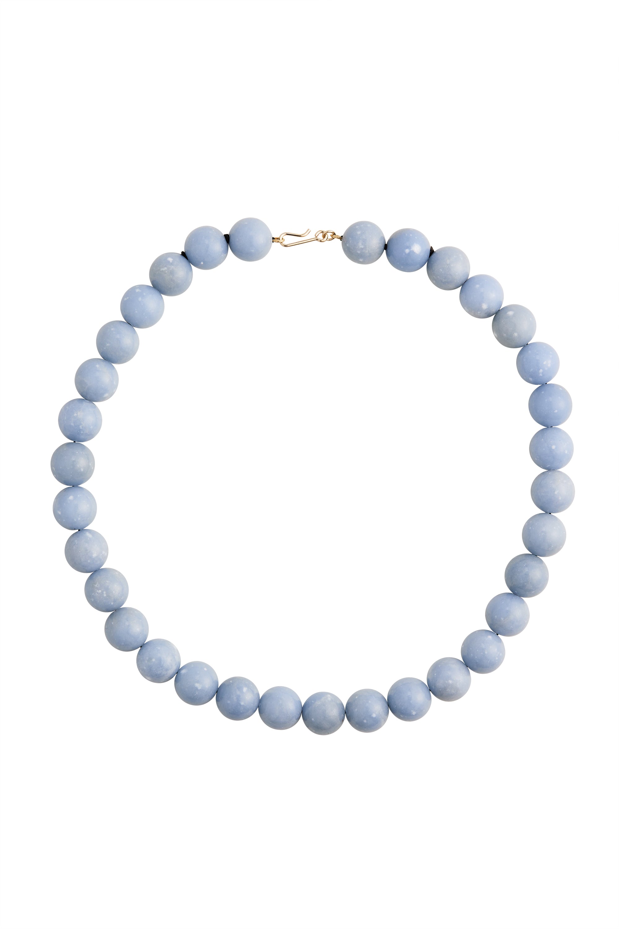 Crafted with a strand of smooth, 12mm Angelite beads in the loveliest shade of blue, the Grande Boule necklace is hand-strung on black silk thread and finished with a 14k gold-filled hook closure.