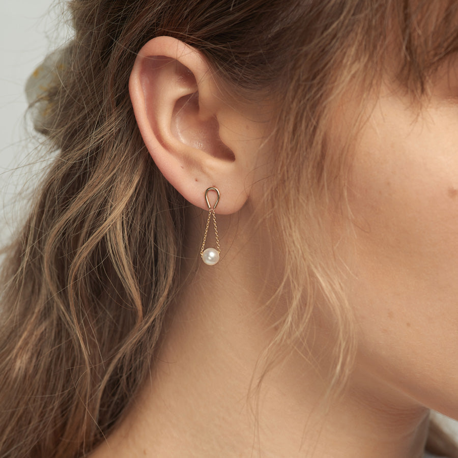 Handcrafted in 14-karat gold, this pair of hourglass shaped pearl dangle earrings is a true timeless beauty.