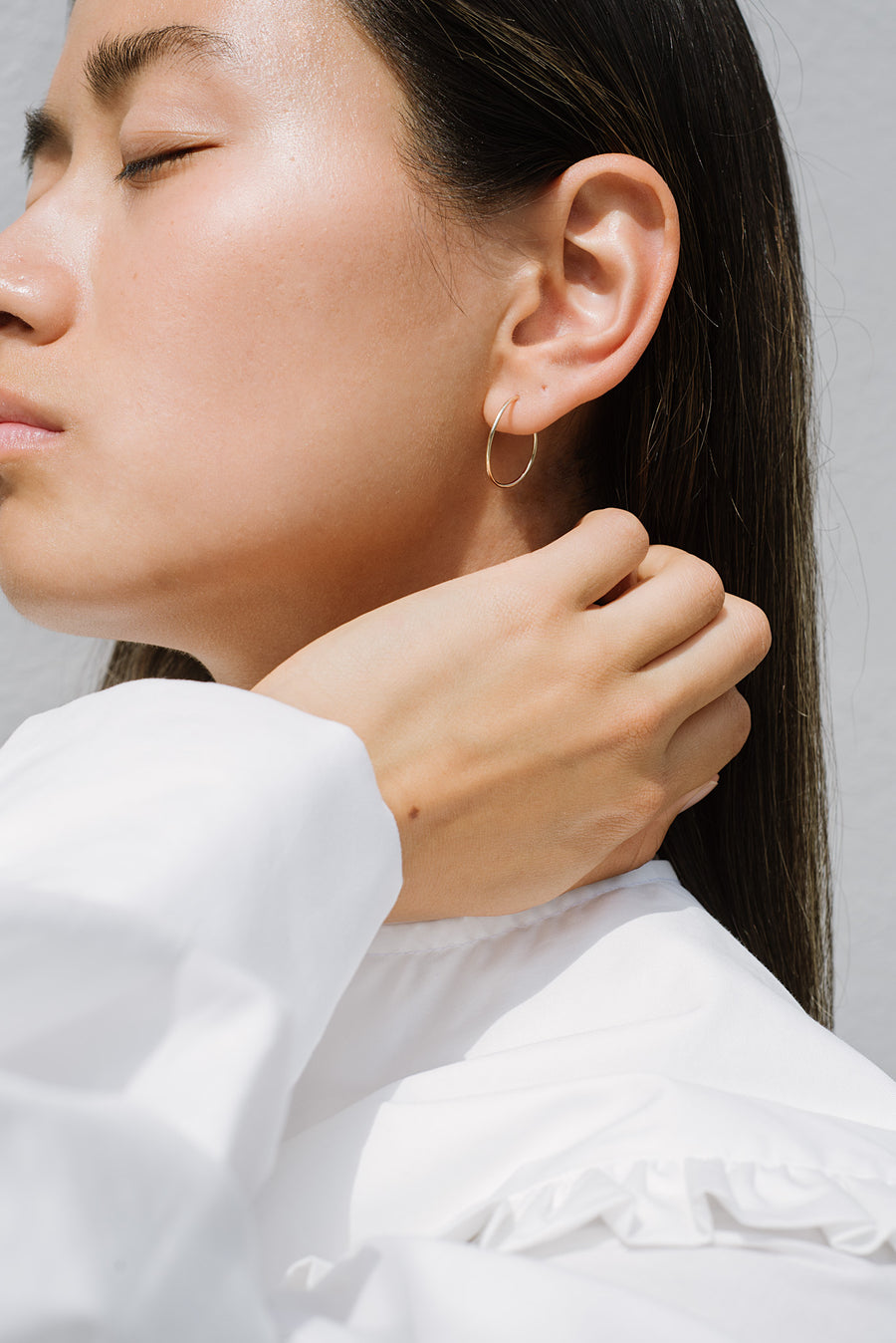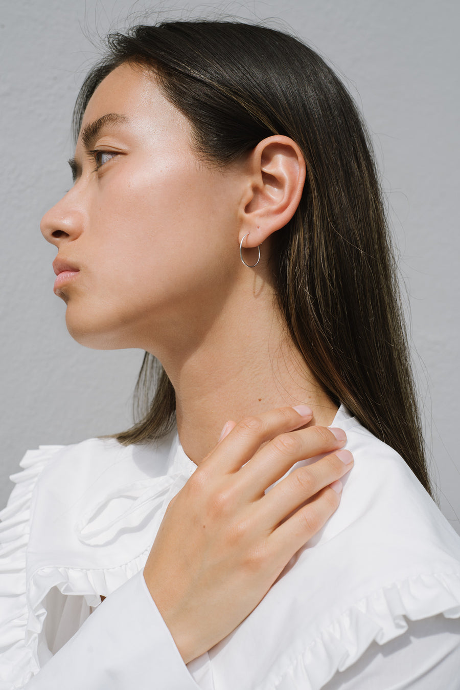 Notify me when availableAdd a little sparkle to your style with these Pull-Me-Through Baby Hoops! Super chic yet delicate, these slim silver hoops are slightly textured for some extra oomph whenever you wear them.