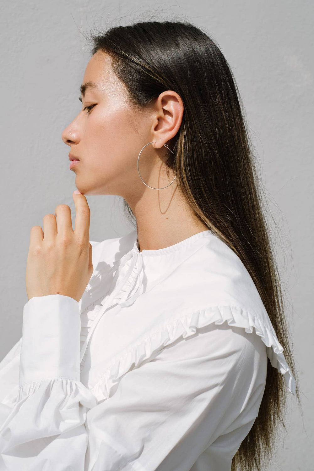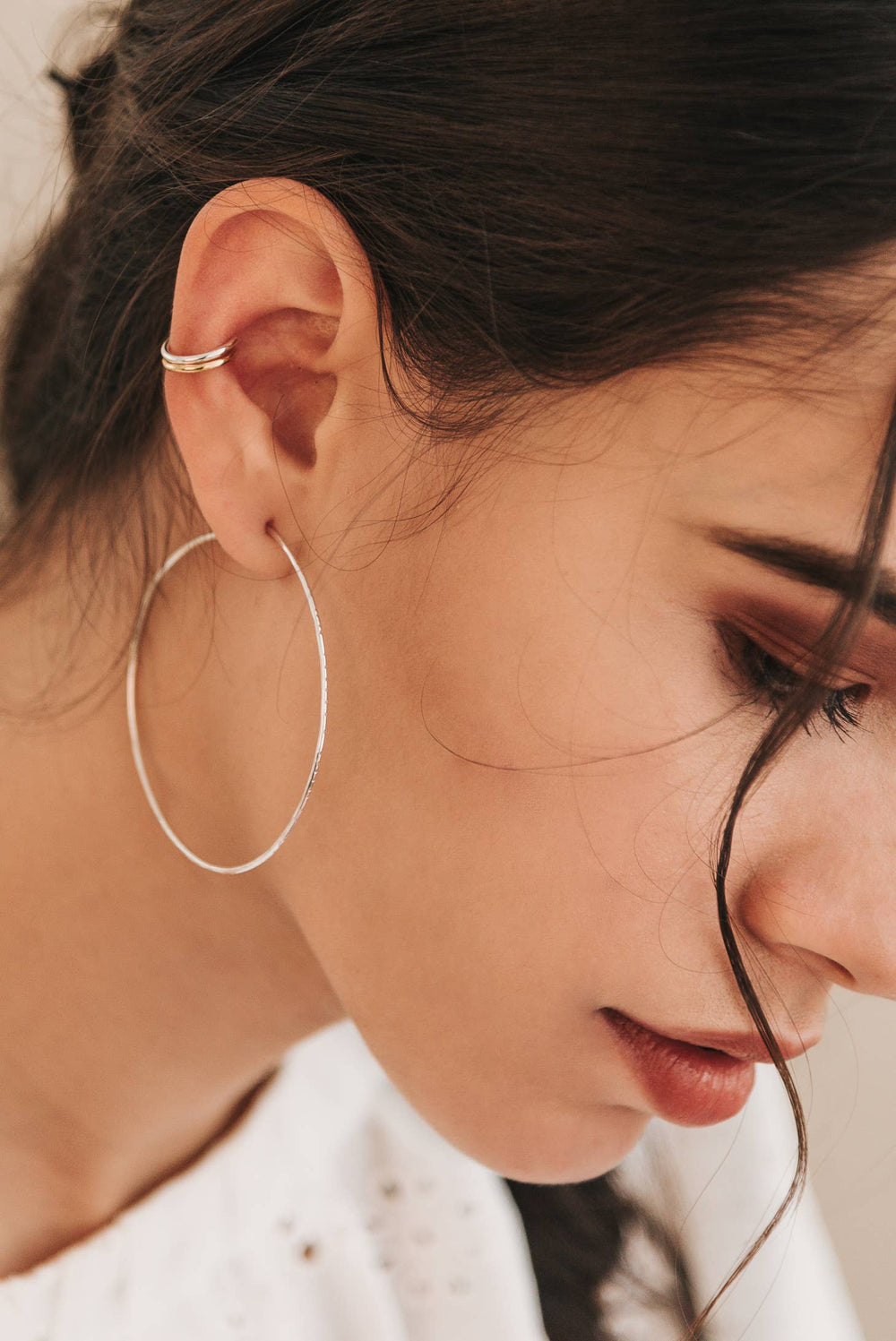 Circular-shaped, fully closed pull-through hoops with delicate tapped detail. Super lightweight and easy to wear.
