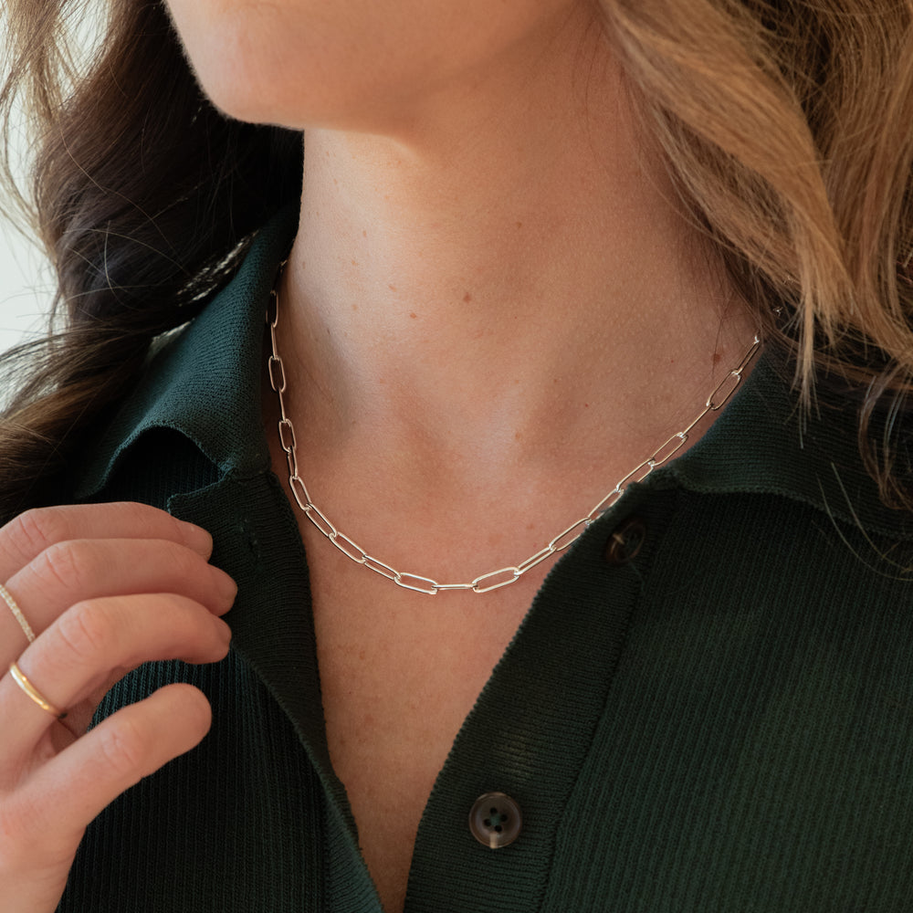 The Roberts Paperclip Chain Necklace is a tribute to timeless elegance and effortless style. Bold enough to standalone, yet versatile enough to pair with your favourite necklaces. The length of the Roberts Paperclip Chain is fully adjustable, making it a layering essential.